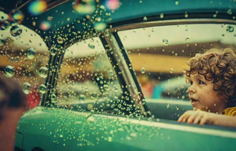 You still remember the times when Dad would pull faces at you from outside the car as he wiped the clouds of bubbles from the screen.